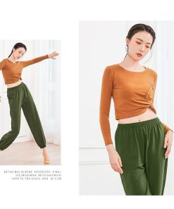 ダンス トップス 長袖 半袖 ストレッチ Tシャツ ショート丈 へそ出し 個性 結び目 無地 伸縮性有り ラテンダンス 古典ダンス バレエ 社交ダンス 練習着 レッスン