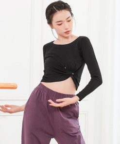ダンス トップス 長袖 半袖 ストレッチ Tシャツ ショート丈 へそ出し 個性 結び目 無地 伸縮性有り ラテンダンス 古典ダンス バレエ 社交ダンス 練習着 レッスン