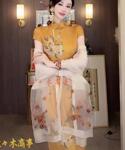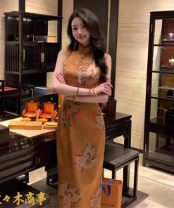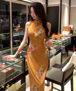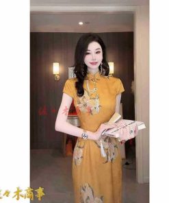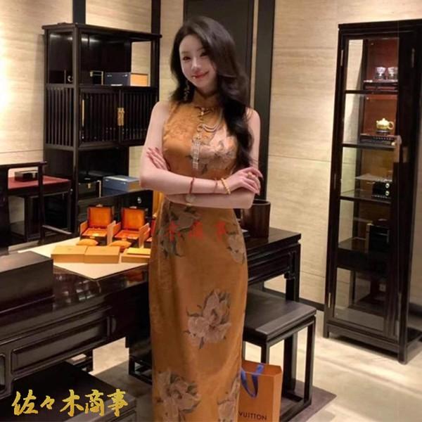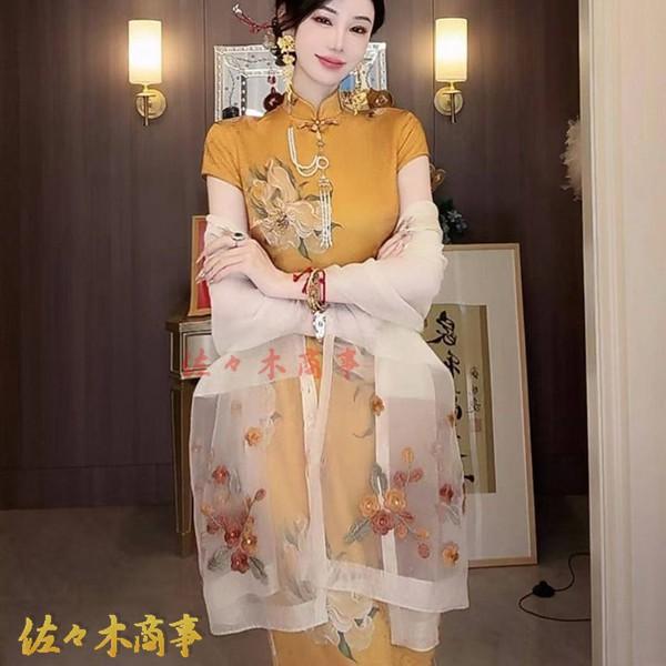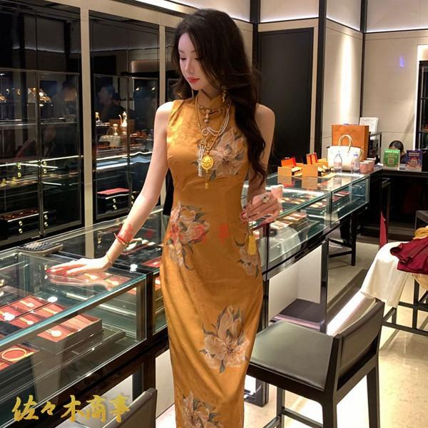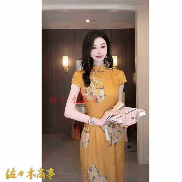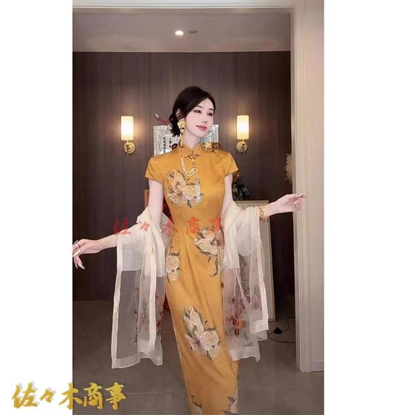 チャイナドレス レディース ワンピース チャイナ服 半袖 ロング丈 花柄 プリント スリット ファッション エレガンス 美しい 春夏