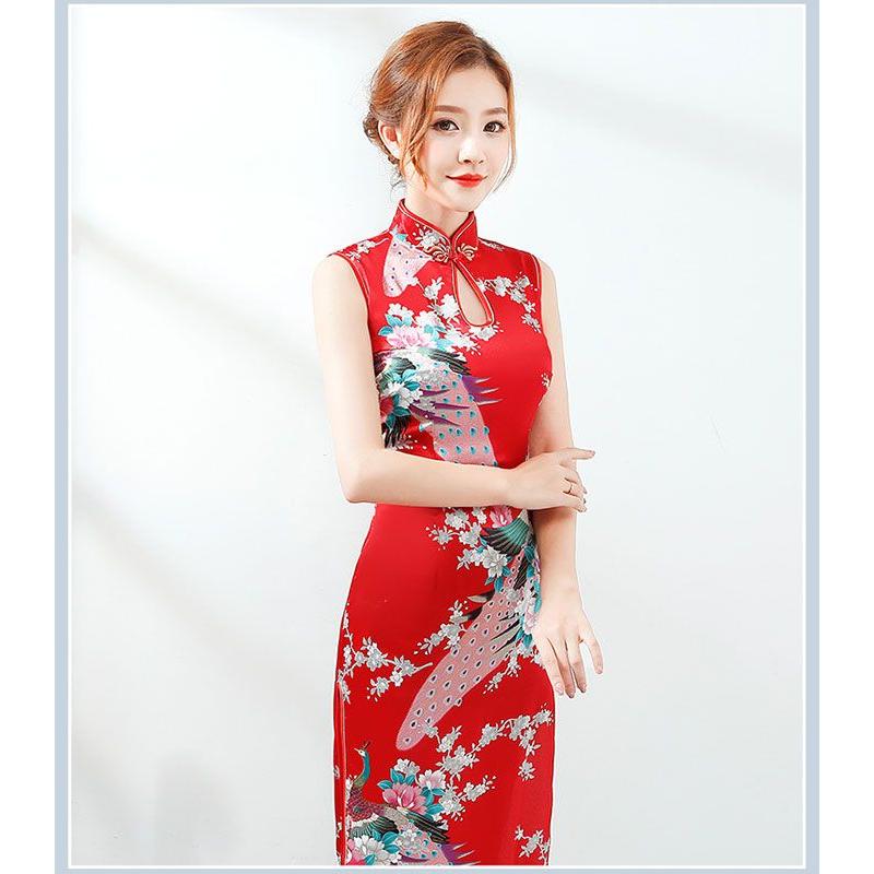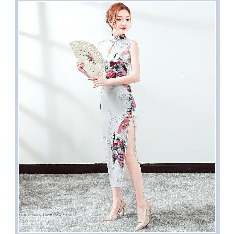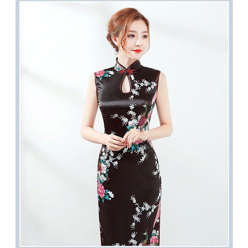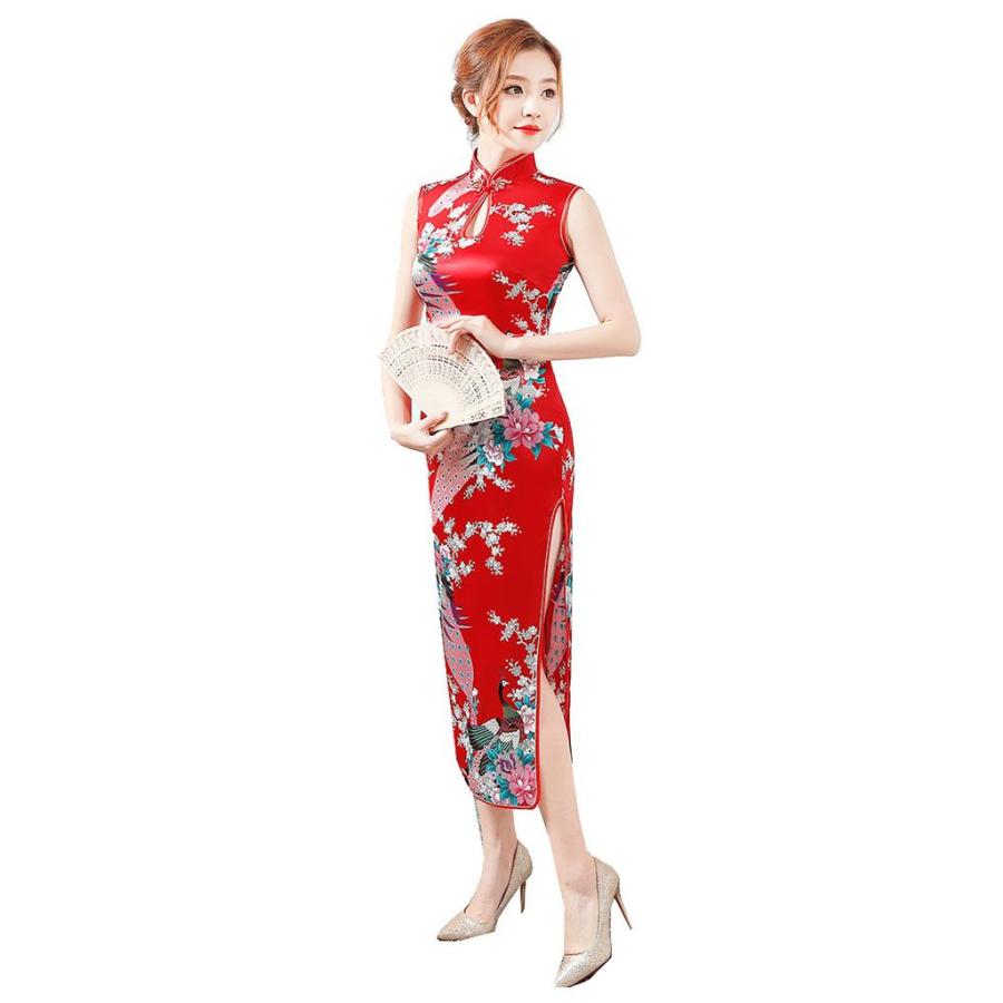 チャイナドレス ロング丈 袖なし チャイナ ドレス パーティードレス 発表会 演奏会 ワンピース エレガント 大きいサイズ コス