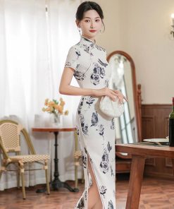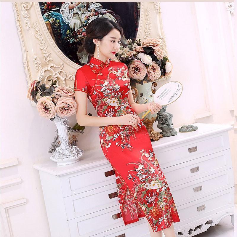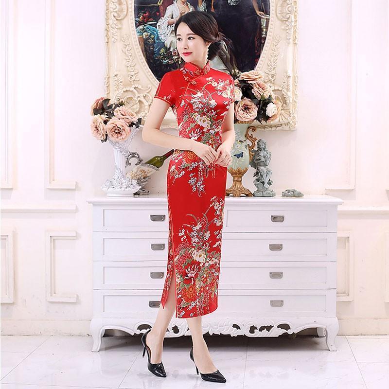 チャイナドレス ロング 半袖 花柄 チャイナ風ワンピース 大きいサイズ お洒落 上品 パーティー 結婚式 ドレス ハロウィン コスプレ 衣装 チーパオ