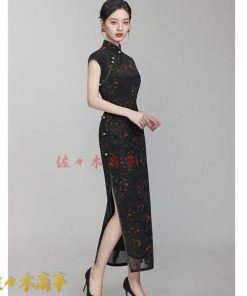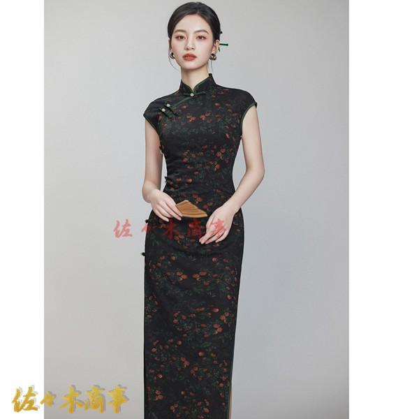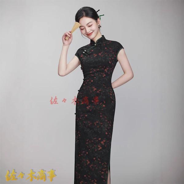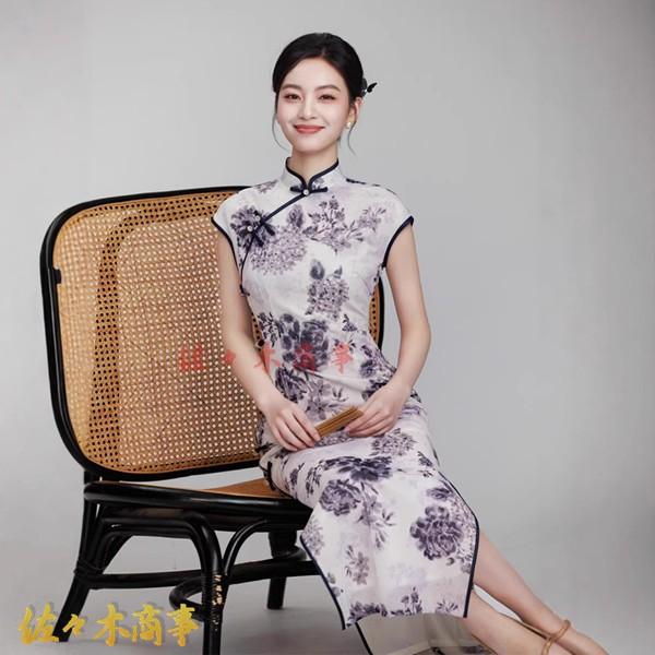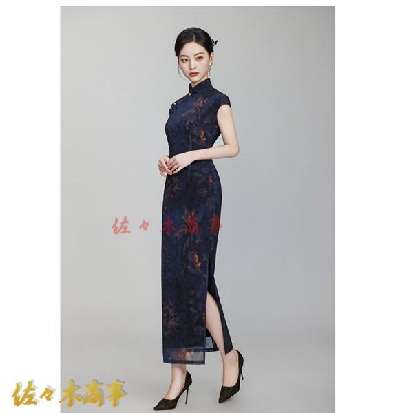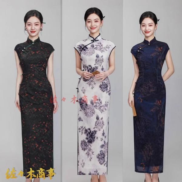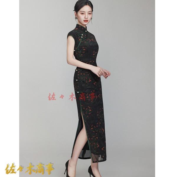 チャイナドレス ワンピースドレス レディース 袖なし 花柄 プリント 着痩せ スリム マキシ丈 ファッション エレガント スリット 春夏