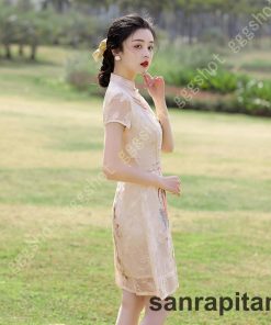 チャイナドレス 花柄 半袖綿素材 ショート丈 チャイナ服 ミニチャイナドレス パーテイ衣装 ワンピース 綿 通気性 レトロ 大きいサイズ 春夏新作