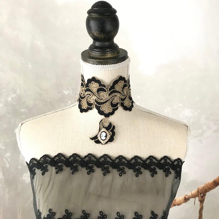 チョーカー レース レディース アンティーク調 パーティー ビクトリア調 ネックレス ゴールド系 アクセサリー バレエ衣装 舞台衣装 ステージ衣装 ダンス衣装 社交ダンス フィギア衣装 コスプレ ゴスロリ