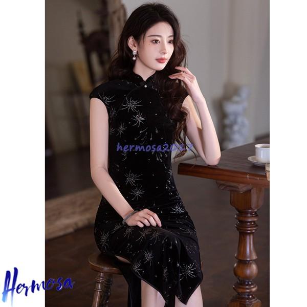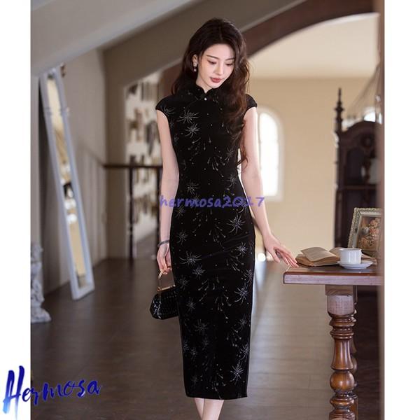 チーパオ レディース チャイナ服 ワンピース チャイナ風 民族衣装 ロング丈 中華服 ファッション エレガント ドレス イブニングドレス