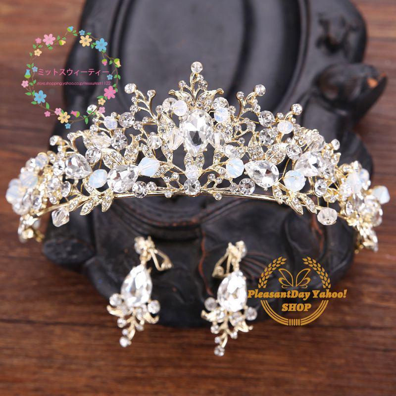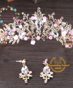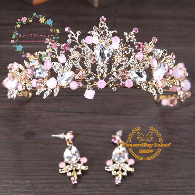 ティアラ ウエディング ブライダル パーティー ジュエリー アクセサリー 2点 ウェディング小物 結婚式 花嫁 二次会 披露宴 発表会 演奏会 ピンク