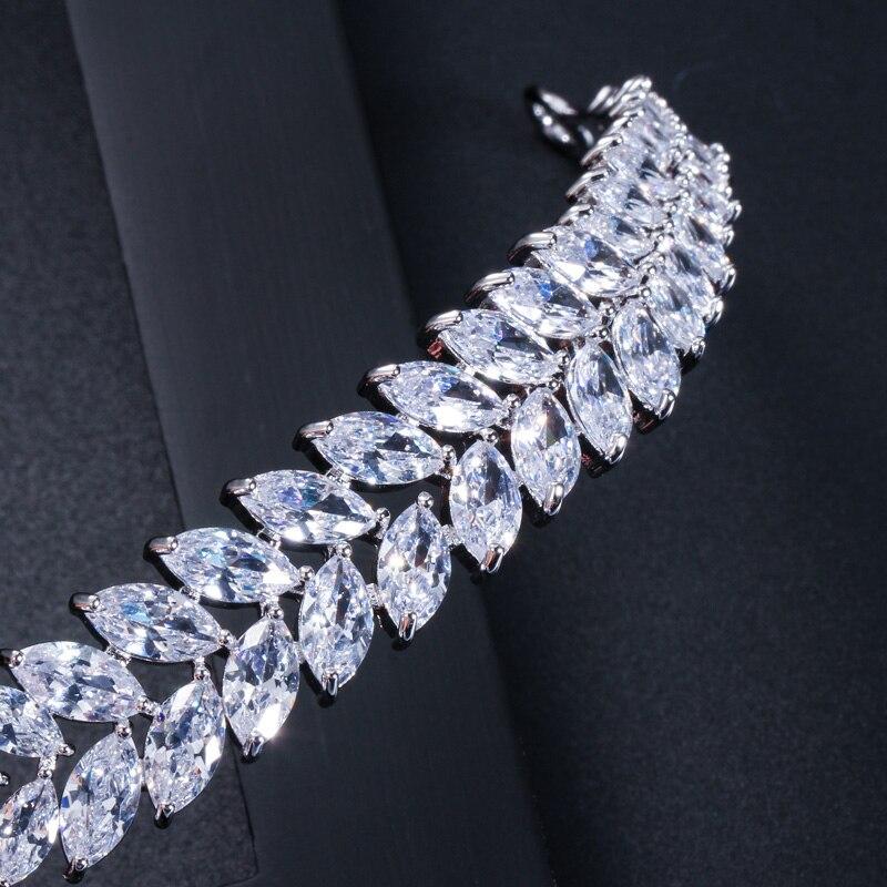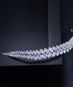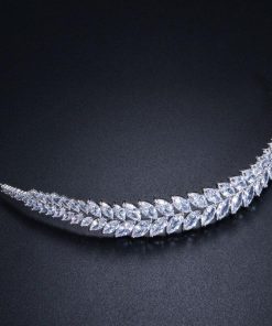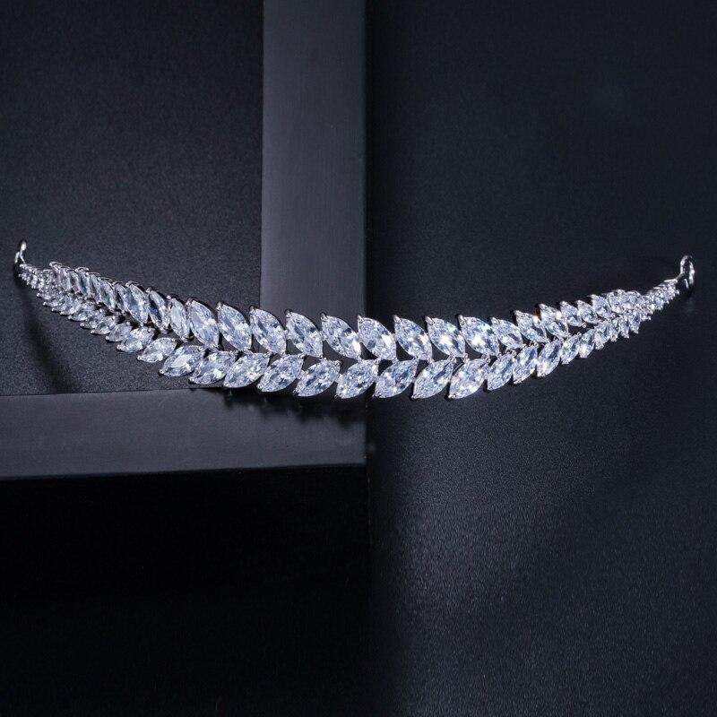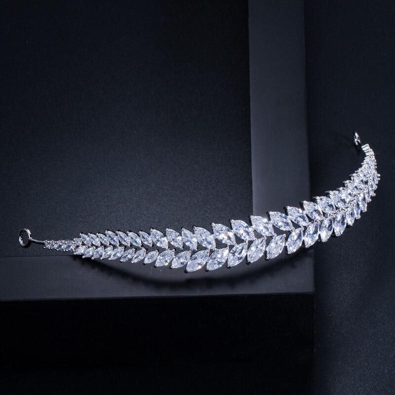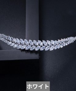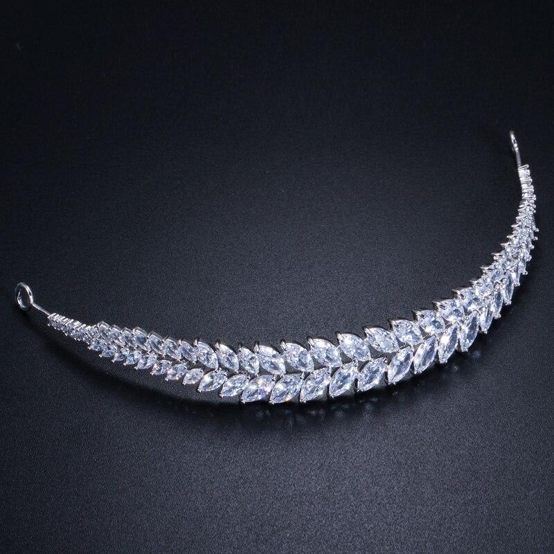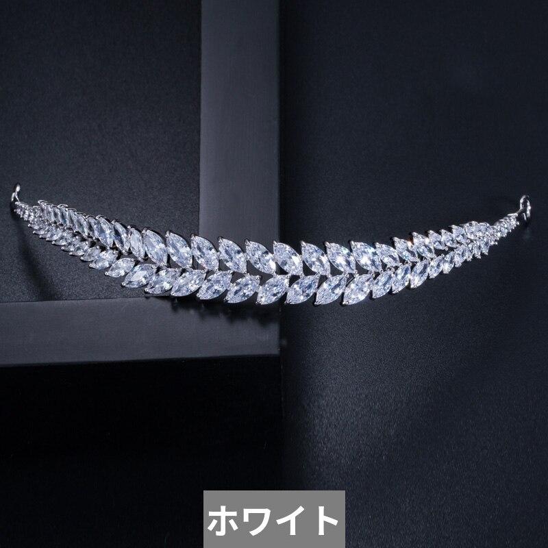 豪華 ノーブル 木の葉 リーフ デザイン ブライダル 結婚式 ウェディング マーキス カット キュービック ジルコン ジルコニア お姫様 プリンセス クイーン クラウン 王冠 ヘアー ジュエリー レディース