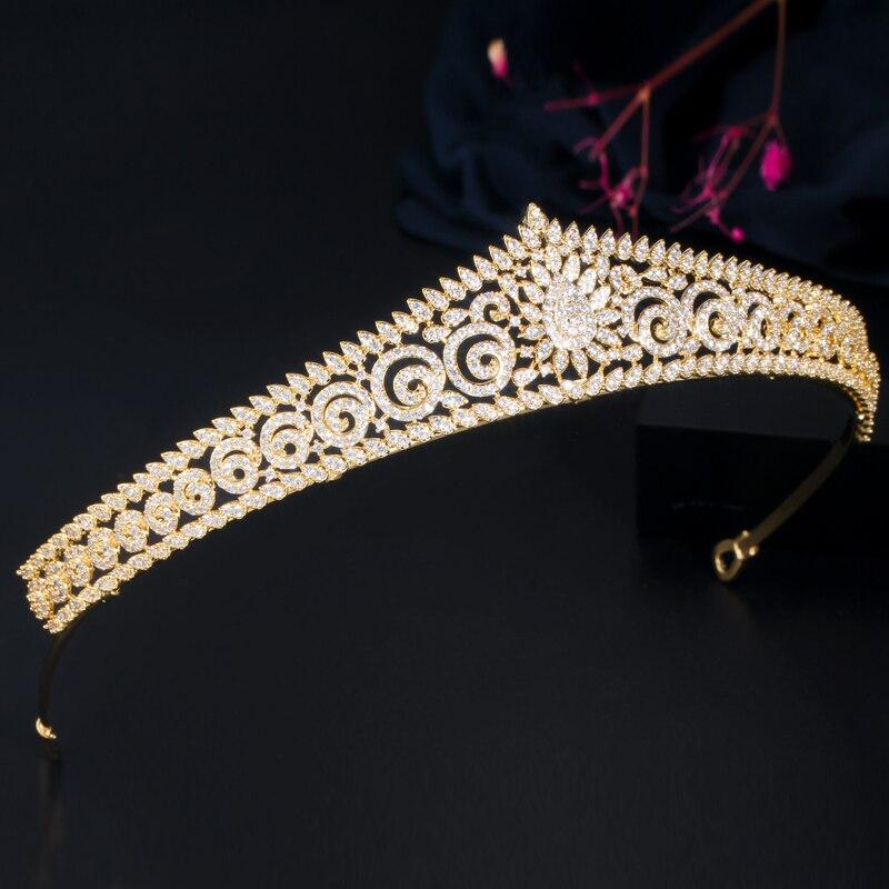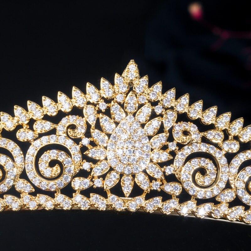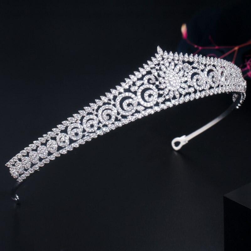 ジルコニア ビンテージ キュービック ジルコン 大 結婚式 ウェディング ティアラ クラウン ブライダル ヘアー アクセサリー 贅沢 パーティ コスチューム ジュエリー