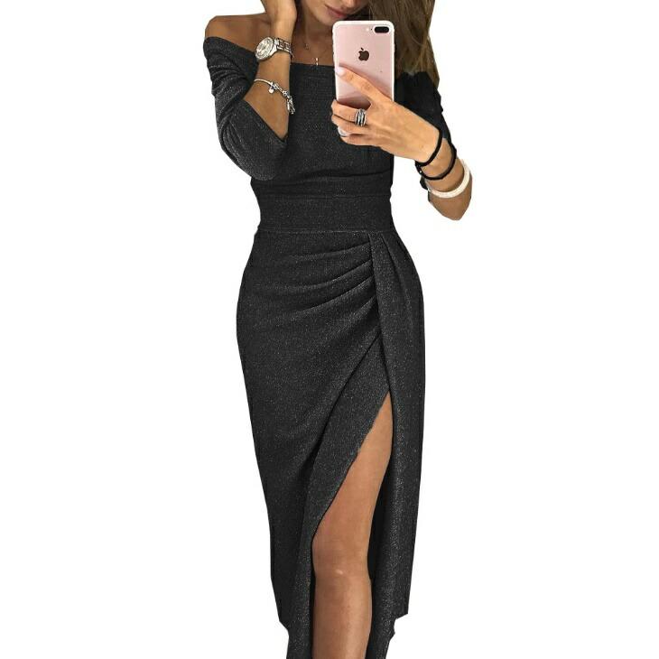 ドレス キャバ レディース ミディアムドレス 長袖 タイト セクシー ワンピース スリット 大きいサイズ ナイトドレス ミディアム丈 大人 女性 ホステス