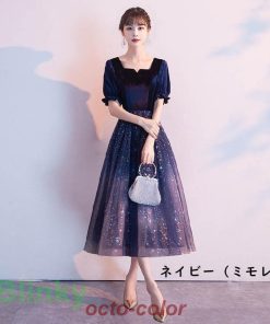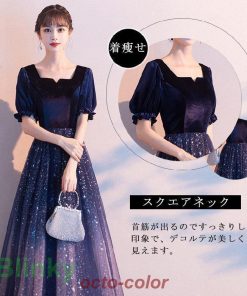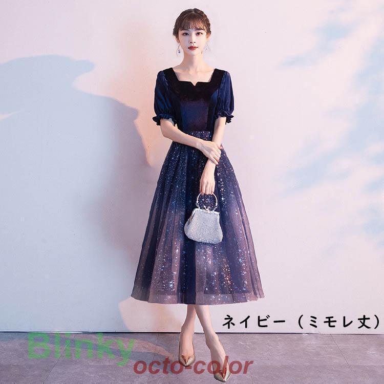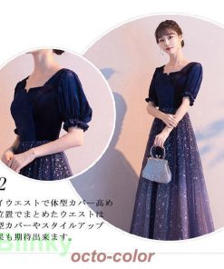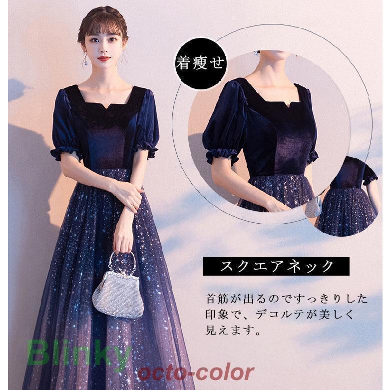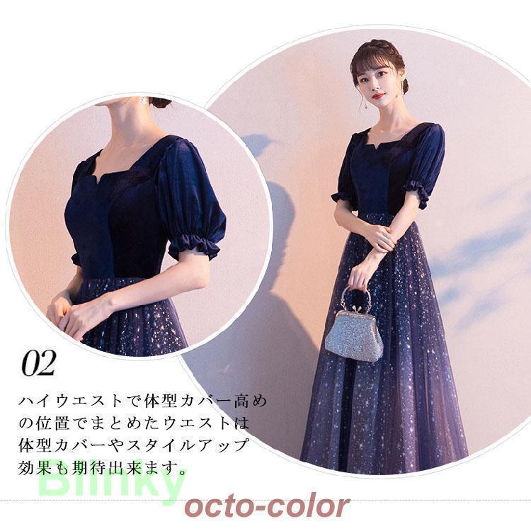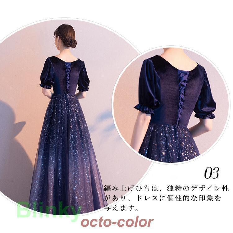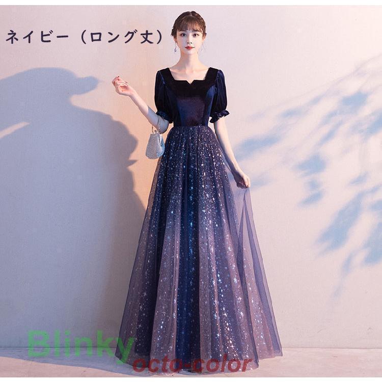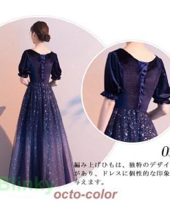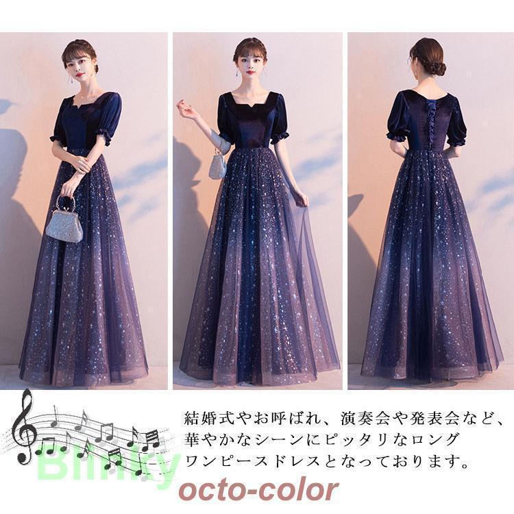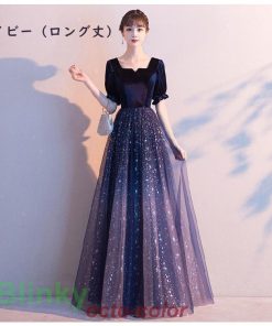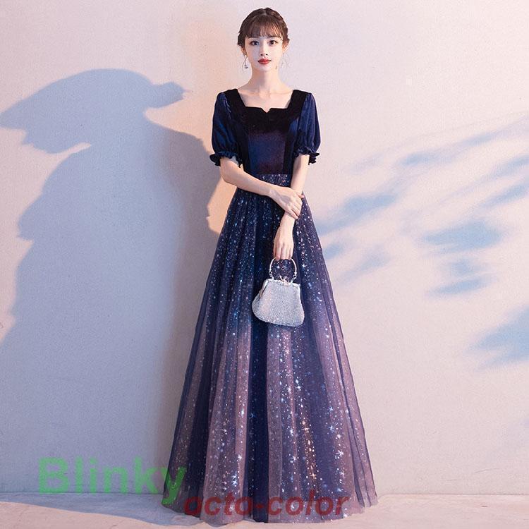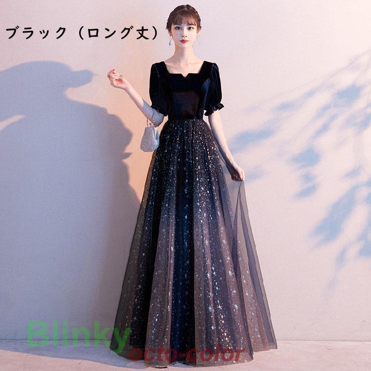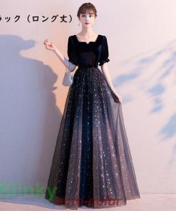 ドレス 大人 ピアノ 発表会 ロングドレス 高校生 パーティードレス 中学生 演奏会ドレス 黒 結婚式 マキシ丈 袖付き 星空 キラキラ ンピース