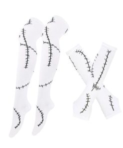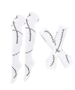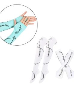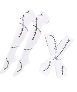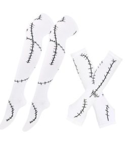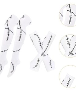 [女性用ハロウィンコスチュームセット]アームスリーブ1組とステッチの傷跡がプリントされたロングソックスが含まれています.