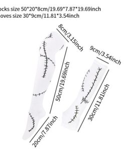 [フィット]ハロウィーンのステッチが施された傷跡の袖とロングソックス.女性標準サイズで.ほとんどのティーンや大人にフィットします.