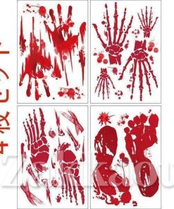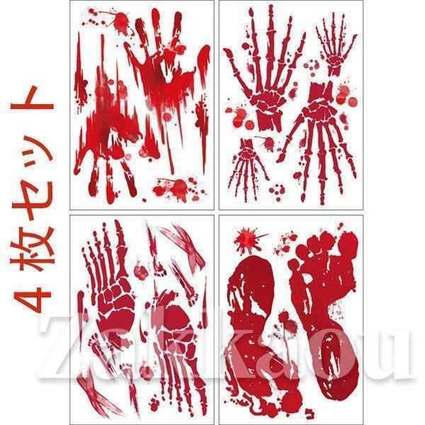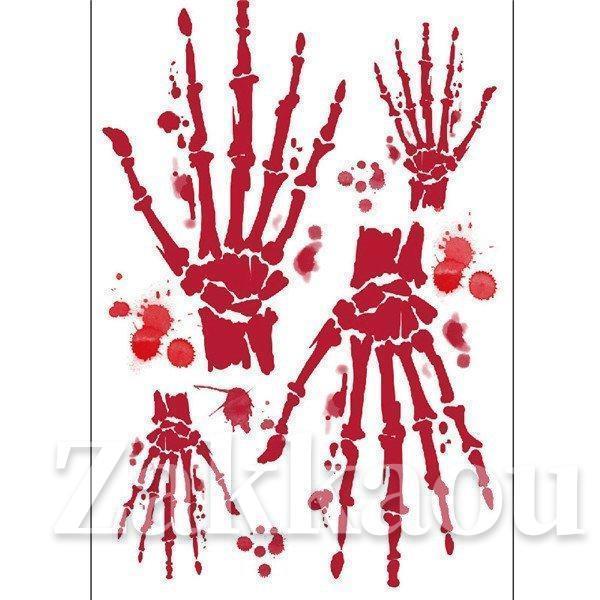 ハロウィン お得 4枚セット 血のり シール 手形 Halloween ハロウィンタトゥーシール 水貼る極薄 ポイント消化