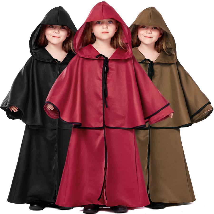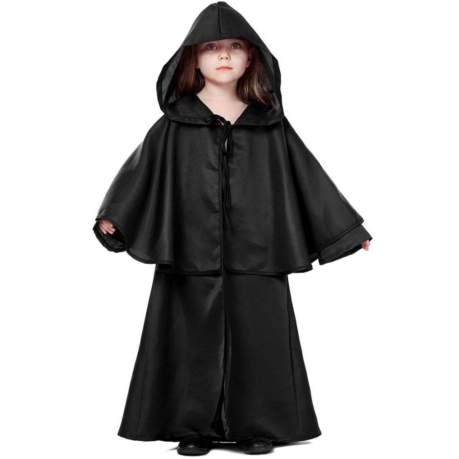 ハロウィン キッズ 子供服 神父 マント フード付きデビル ホラー 怖い 仮装 衣装 ローブ パーティー 舞台 演出服 学園祭 文化祭 演劇 鬼 おに おばけ