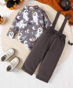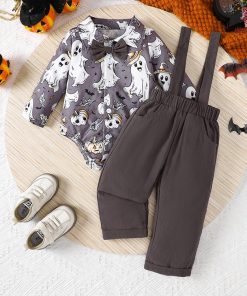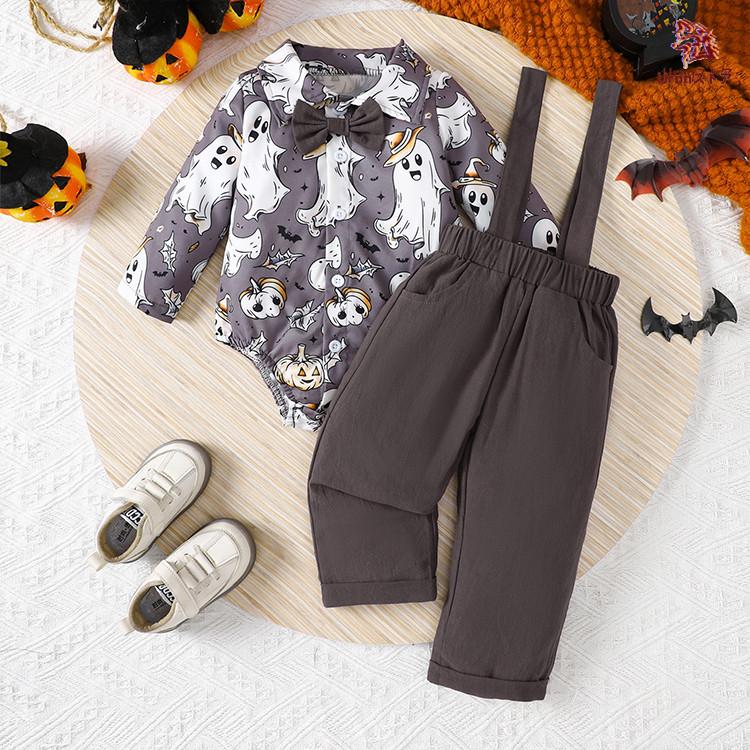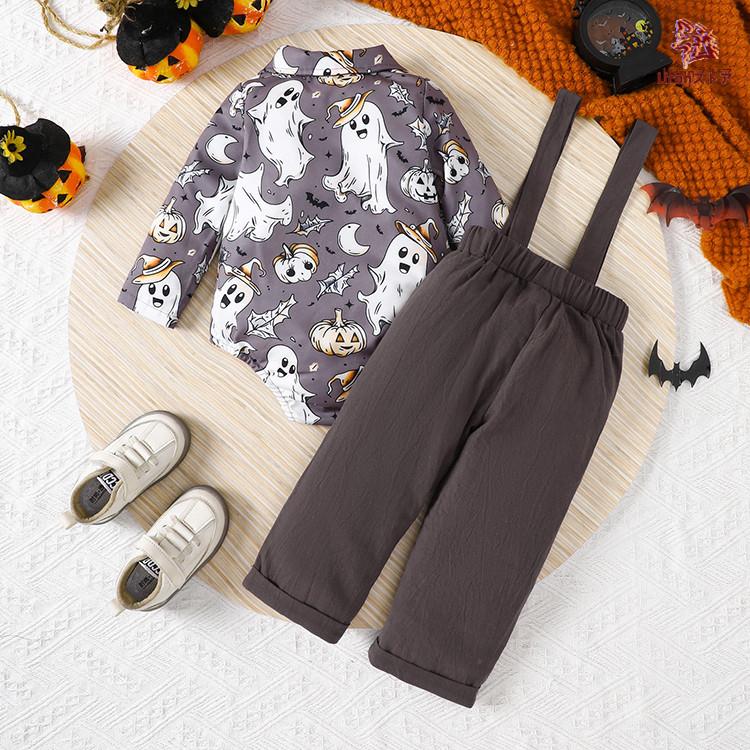 ハロウィン コスプレ 仮装 変装 ベビー ロンパース サロペット ブルー コーヒー色 幽霊 幼児 着ぐるみ 長袖 オーバーオール 2点セット キッズ 衣装 赤ちゃん コ