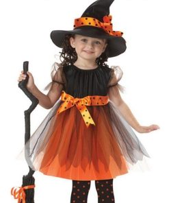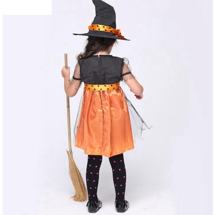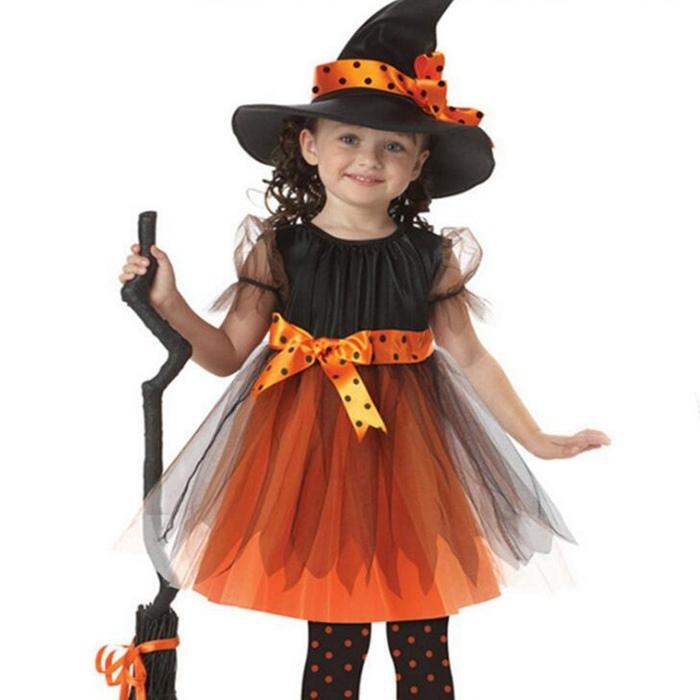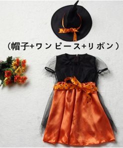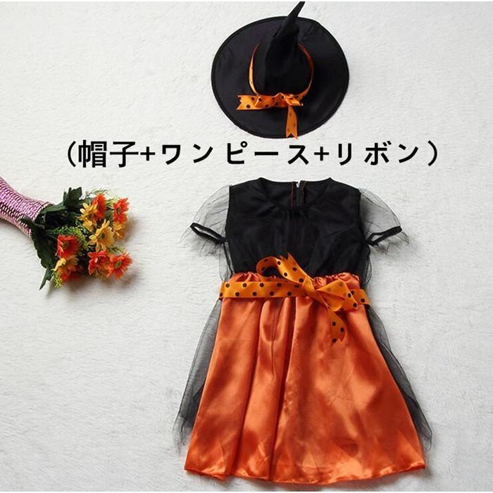 ハロウィン コスプレ 魔女 子供 女の子 衣装 仮装 可愛い 帽子&ワンピース&リボン 3点セット キッズ 魔女っ娘