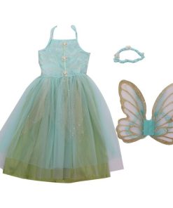 ハロウィン 衣装 コスチューム コスプレ 仮装 女の子 子ども 子供 キッズ 小学生 保育園 かわいい 蝶 エルフ 妖精ドレス 3点SET 100 110 120cm 緑