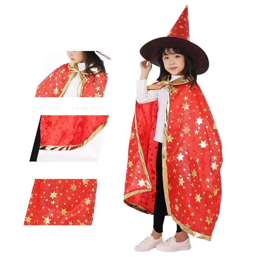ハロウィン 衣装 子供 キッズ クローク コスプレ 子供コスチューム マント 女の子 魔女 ハロウイン 仮装 パーティー 男の子 仮装用マント 星柄 帽子付き 魔法使