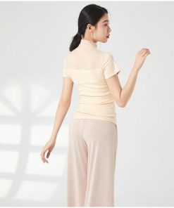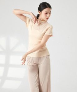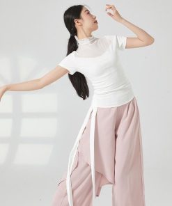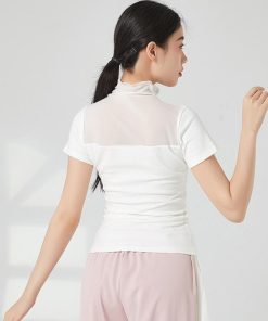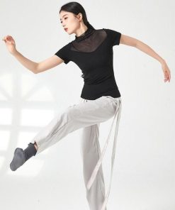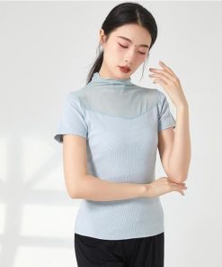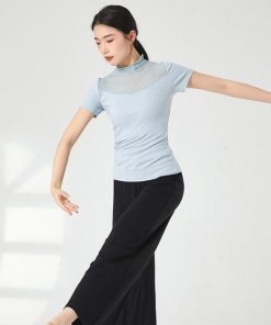 バレエ トップス ダンス 衣装 半袖 ハイネック チュール切替 エレガント レッスン着 Tシャツ ストレッチ 動きやすい ヨガ 古典ダンス 民族ダンス