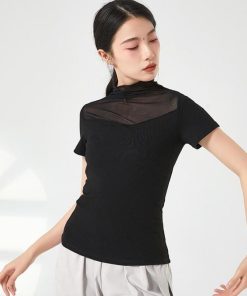 バレエ トップス ダンス 衣装 半袖 ハイネック チュール切替 エレガント レッスン着 Tシャツ ストレッチ 動きやすい ヨガ 古典ダンス 民族ダンス