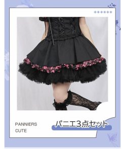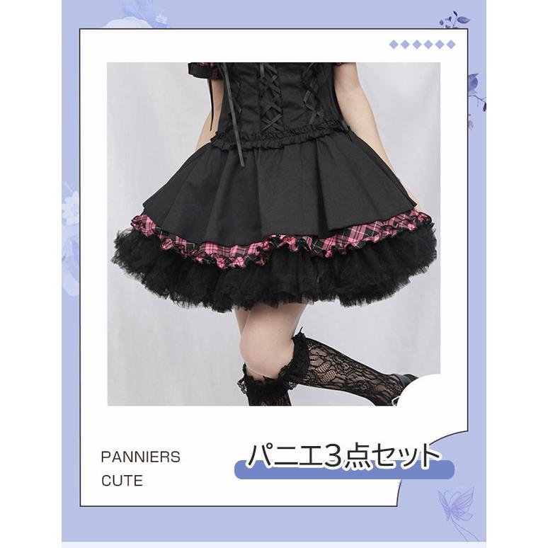 パニエ ブラック 黒 ドロワーズ 3点セット 骨なし 骨あり カボチャパンツ ふわふわ ロリータパニエ 女の子 ハロウィンコスプレ チアガール 衣装 ステージ用 アイドル 仮装 コスチューム かわいい メイド ミニ ショート ワイヤレス la026x1x1t2
