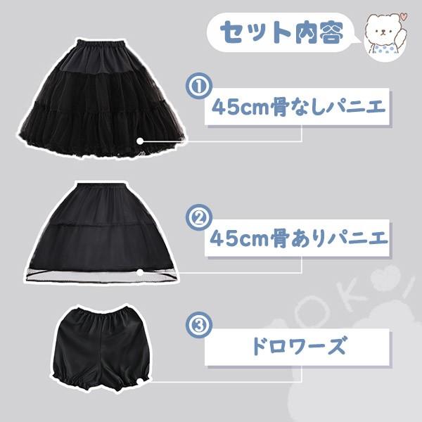 パニエ ブラック 黒 ドロワーズ 3点セット 骨なし 骨あり カボチャパンツ ふわふわ ロリータパニエ 女の子 ハロウィンコスプレ チアガール