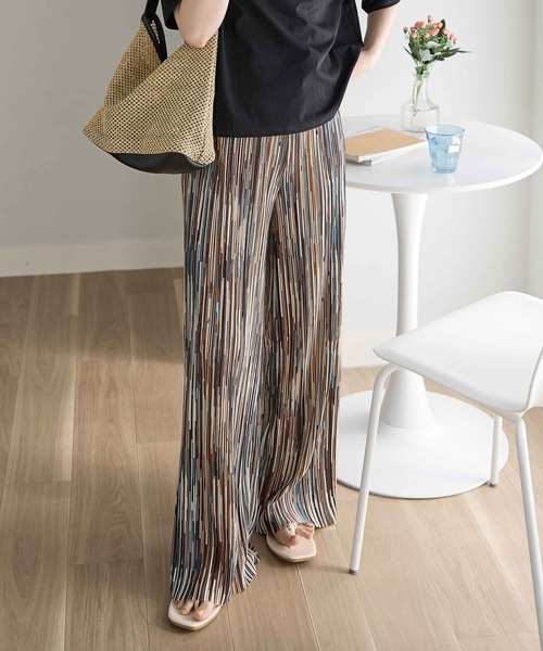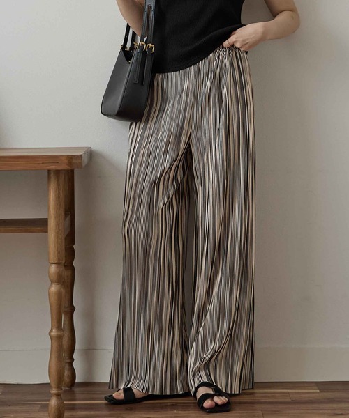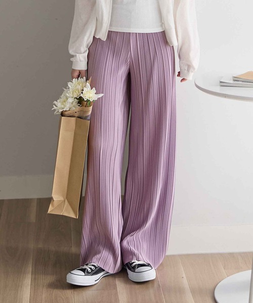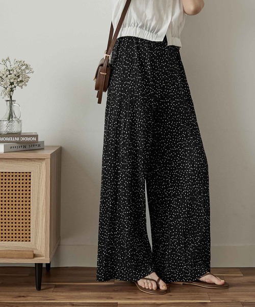 パンツ セルフカットプリーツワイドパンツ レディース