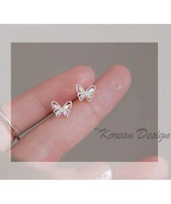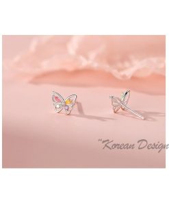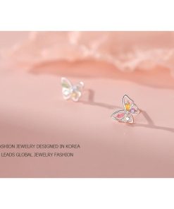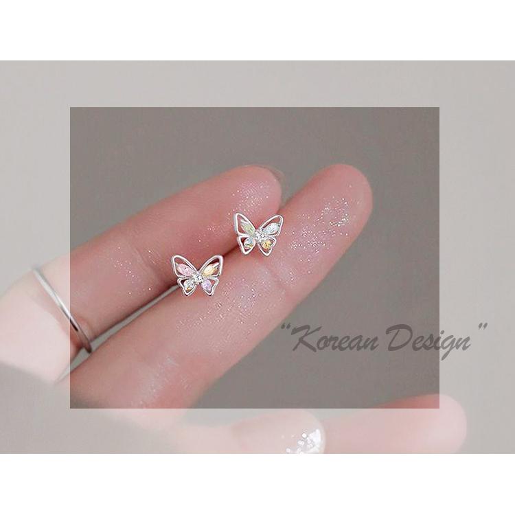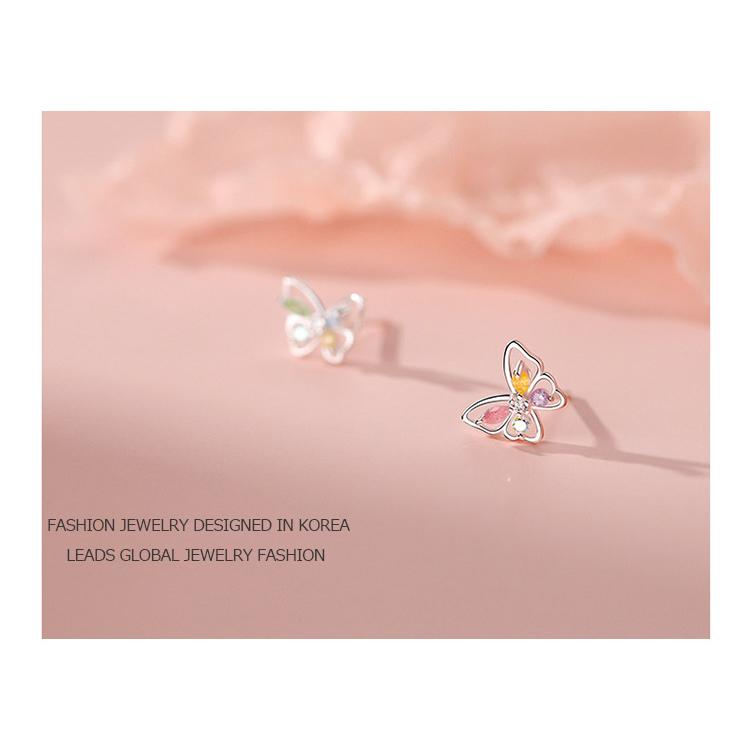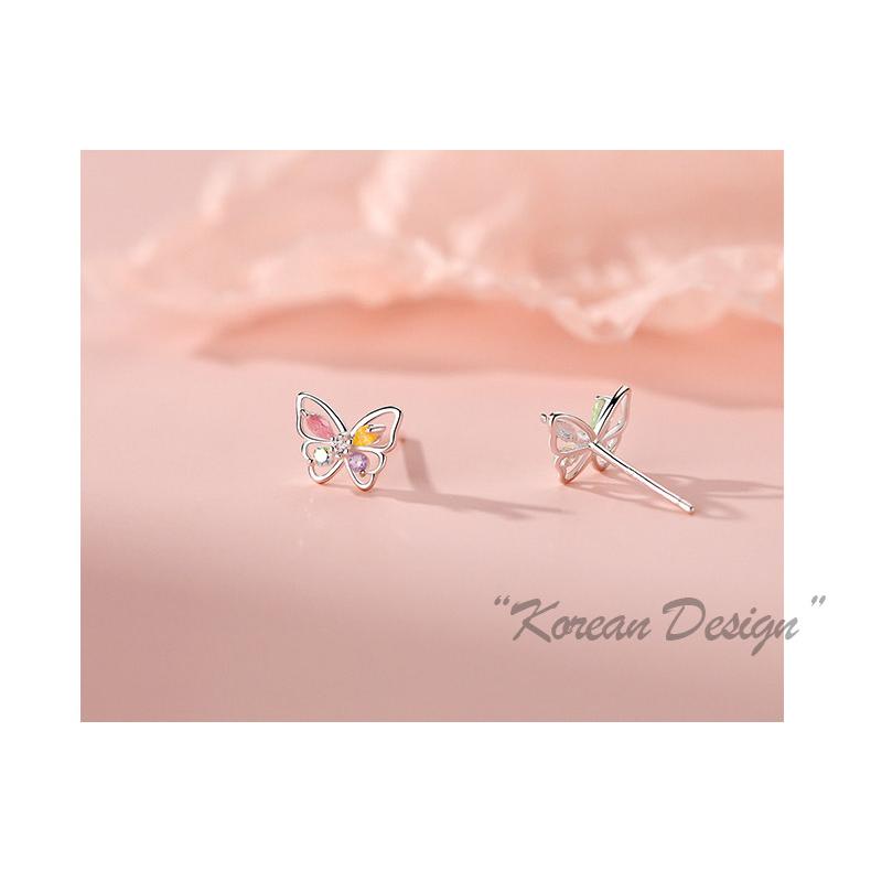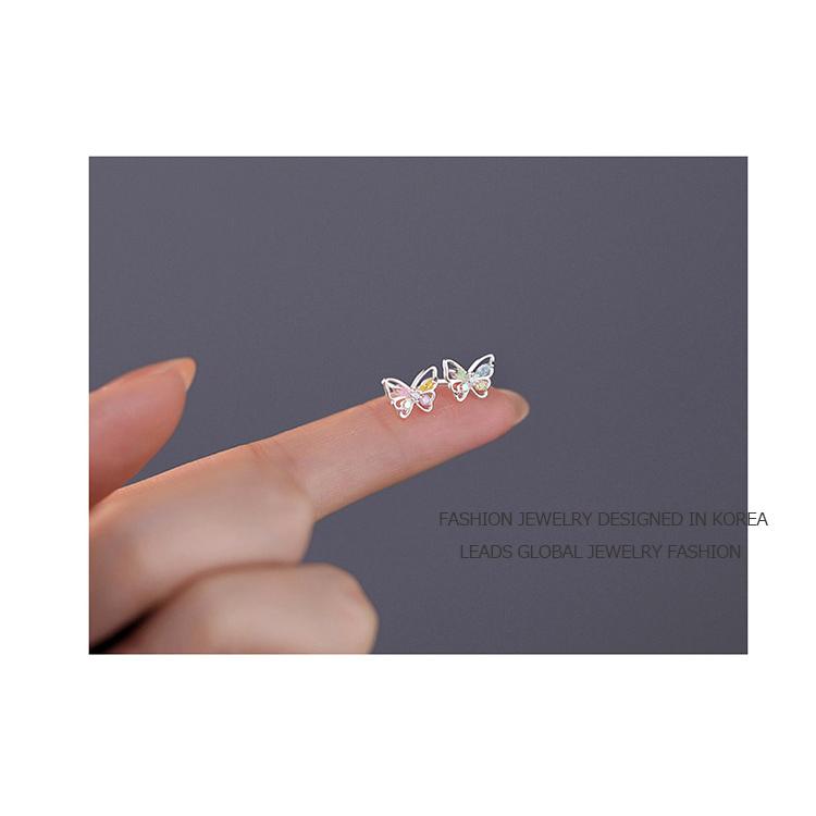カラフルなラインストーンをあしらった、蝶のモチーフのキュートなスタッドピアス。