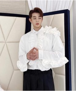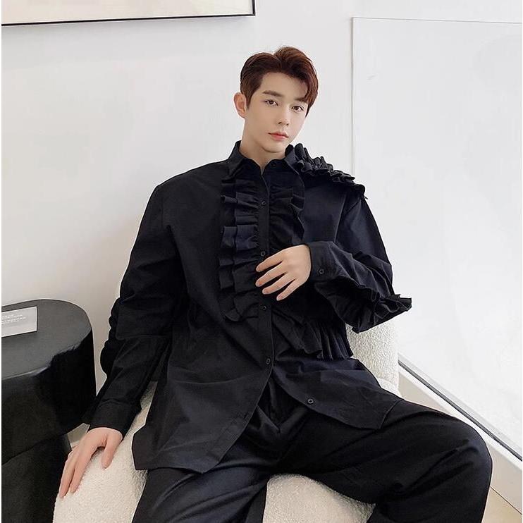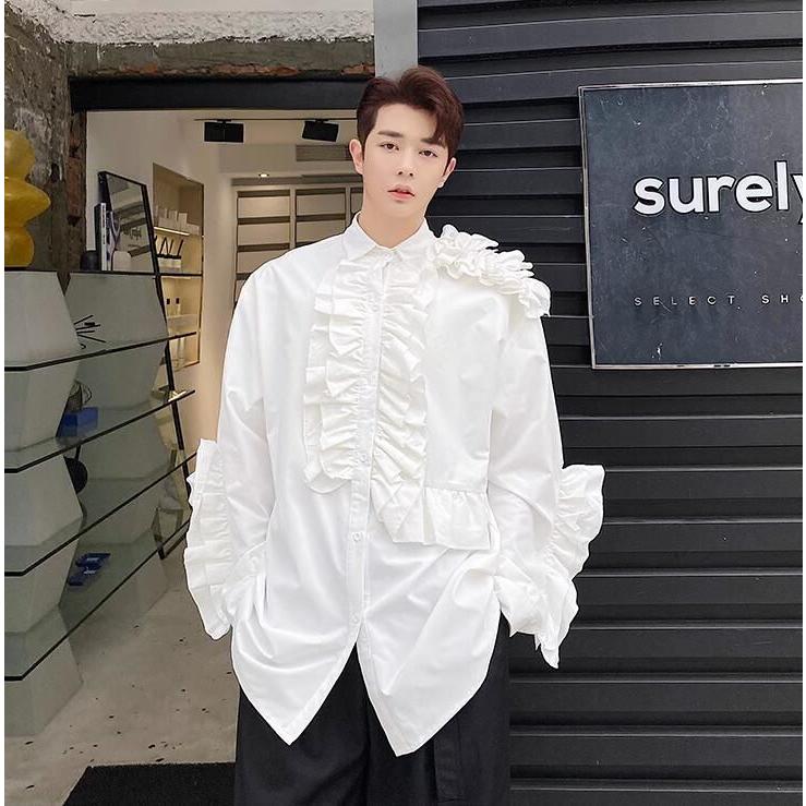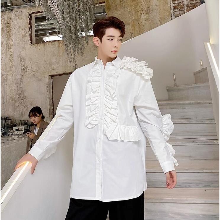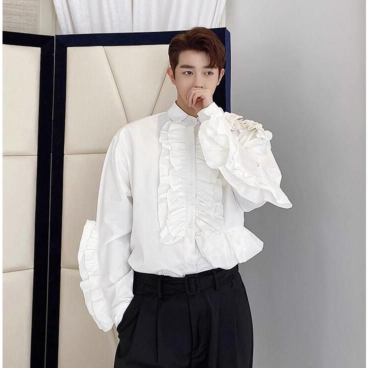 フリル シャツ ステージ衣装 舞台衣装 メンズ 長袖 ミドル丈 ブラウス 欧米 中世期 レトロ ラグジュアリー モード系 ロック バンド ダンス衣装 肩