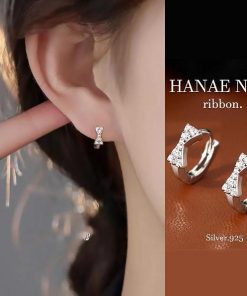 耳元に小さいリボンモチーフの素敵な小粒フープ
