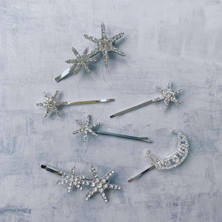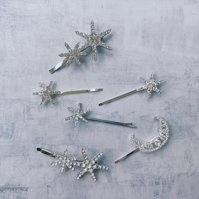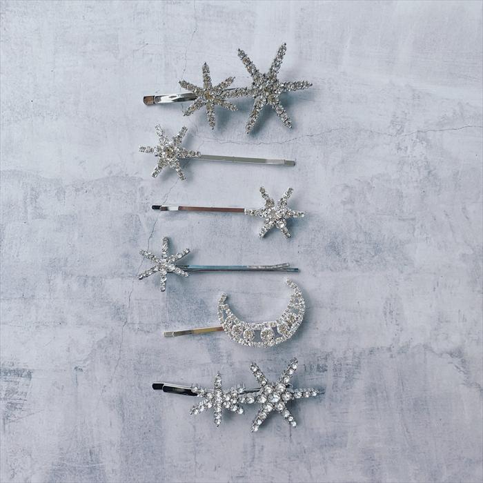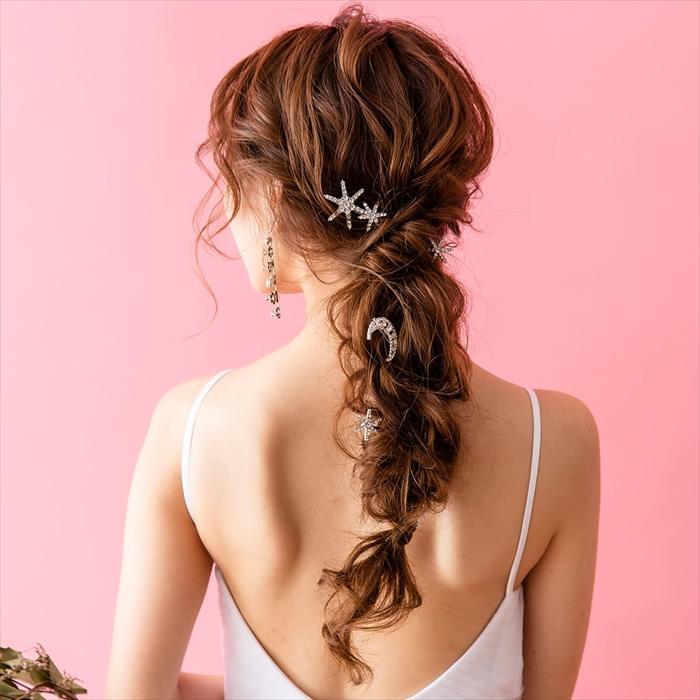 ブライダル ヘアアクセサリー 通販 ヘアピン 6本セット 星 大きめ スターモチーフ 月モチーフ おしゃれ 大人 結婚式 花嫁 披露宴 パーティー 二次会 2次会