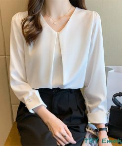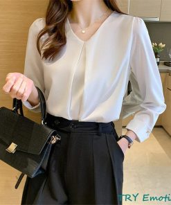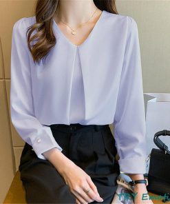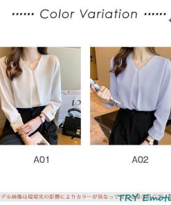 ブラウス レディース 長袖 春秋 Vネック 長袖シャツ トップス 体型カバー OL 通勤 シフォン シンプル おしゃれ ビジネス デート フォーマル