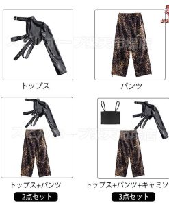 ブラック トップス 豹柄 ウェストパンツ キャミソール キッズ ダンス衣装 韓国 jazz セットアップ おしゃれ 女の子 かっこいい かわいい ゆったり 半袖 へそ出し