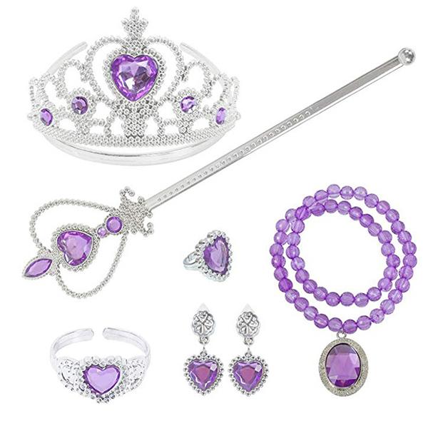 プリンセスジュエリー パープル アクセサリーセット コスプレ ティアラ ステッキ ネックレス イヤリング 指輪 キッズ 子供 紫 ディズニー 魔法