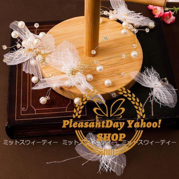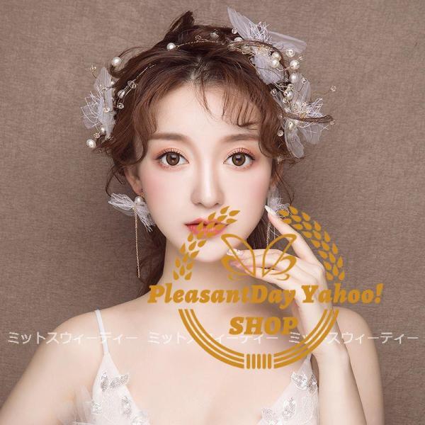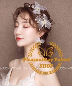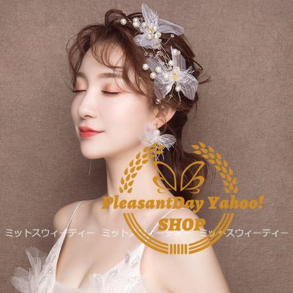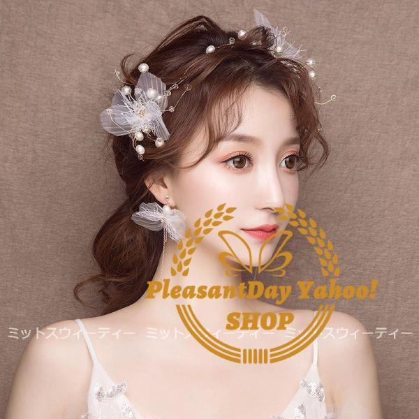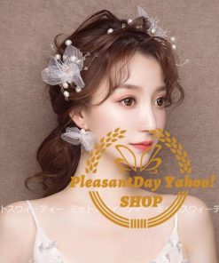 ヘアアクセサリー ヘッドドレス+イヤリング 前撮り ヘアコサージュ ウェディングヘアアクセサリー 髪飾り パール 花 結婚式 二次会 ブライダル チュール