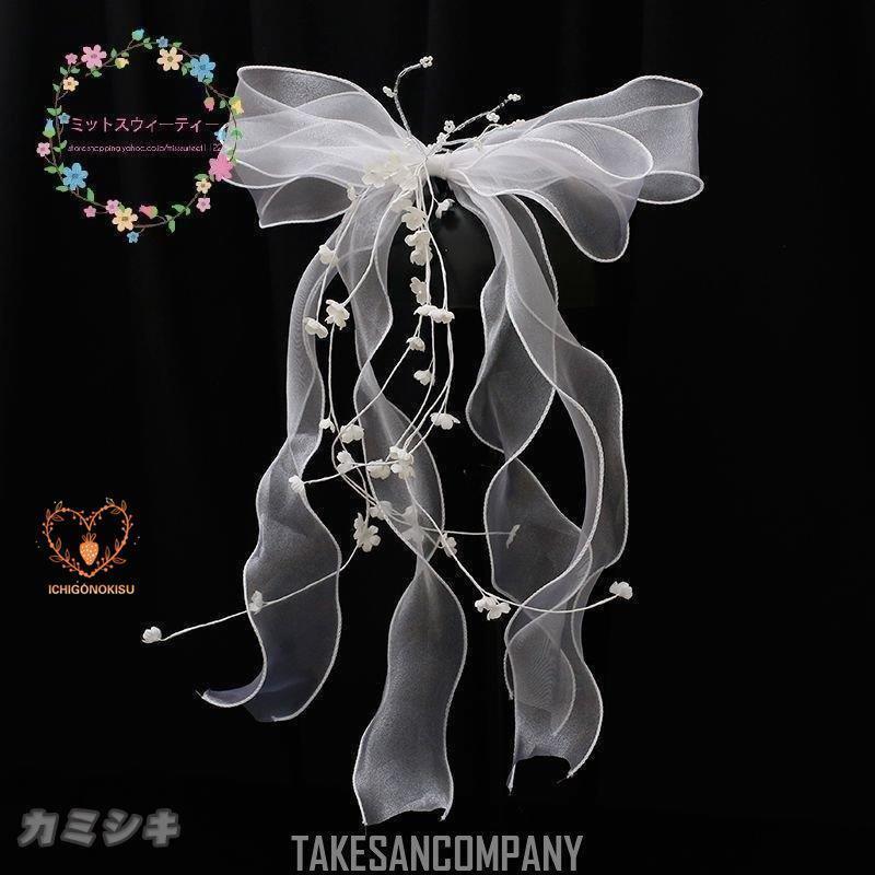 ヘッドドレス ウェディング 髪飾り チュールリボン ヘアアクセサリー ブライダル 結婚式 成人式 卒業式 リゾート 結婚アクセサリー