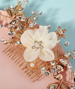 ヘッドドレス コーム 小枝 フラワー バックカチュー 二次会 発表会 結婚式 花嫁 和装 着物 卒業式 パーティー ウェディング ブライダル ゴールド アクセサリー