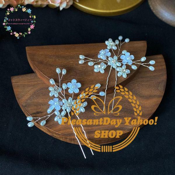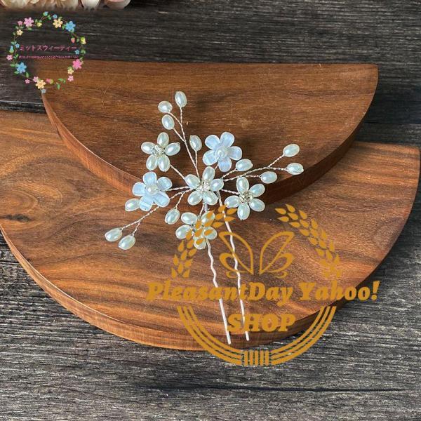 ヘッドドレス パール花 髪飾り ウェディング ヘアアクセサリー ブライダル 結婚式 フォーマル フラワー 花嫁 髪留め 和装 着物 二次会 お呼ばれ 3本 安い