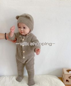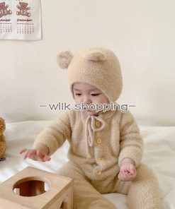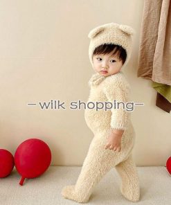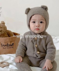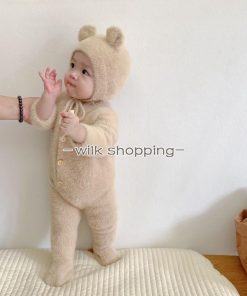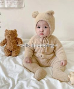 ベビー ロンパース くまちゃん 着ぐるみ もこもこ カバーオール ベビー服 足つき くま耳 ボンネットつき 男の子 女の子 長袖 おしゃれ 可愛い 66 73 80 90 100