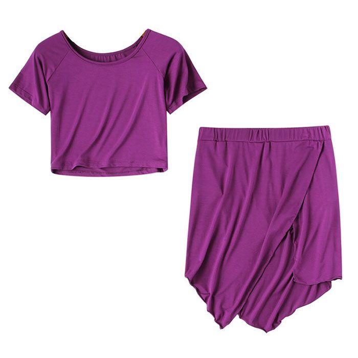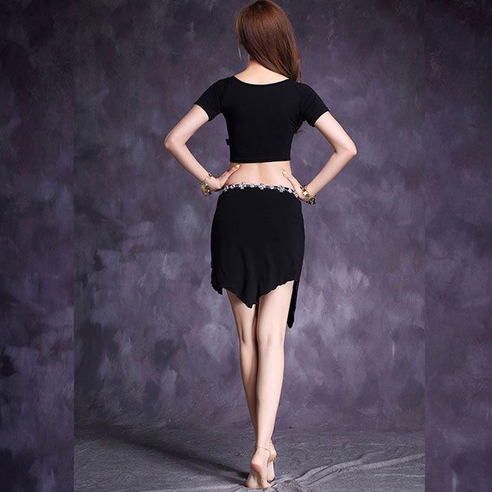 ベリーダンス 衣装 セット レッスン着 セットアップ インナー付き スカート ストレッチ モダールレーヨン トップス シンプル 無地 ダンス衣装 ダンス 発表会 上