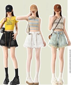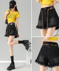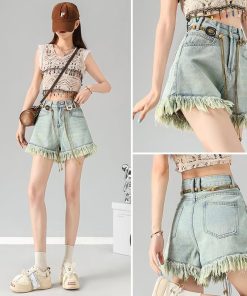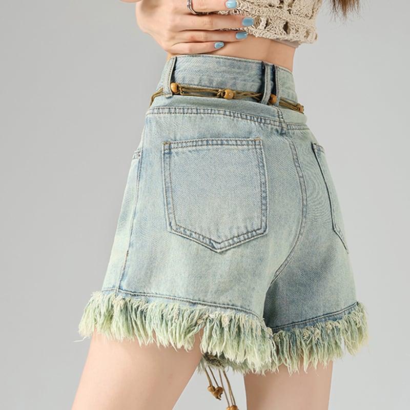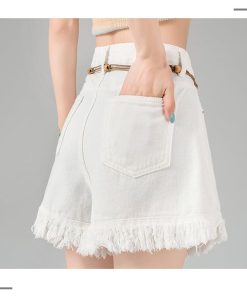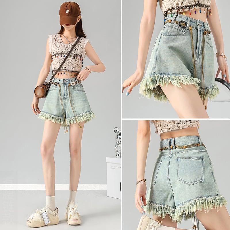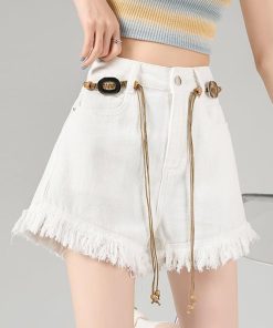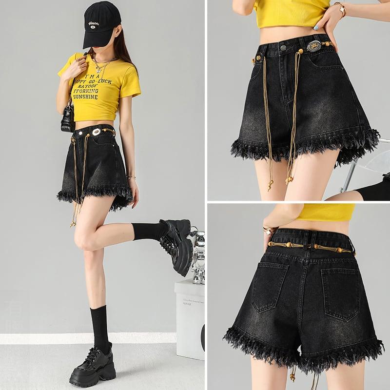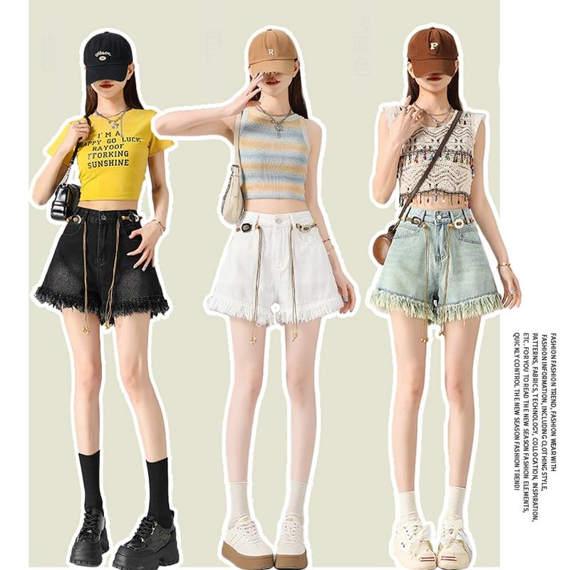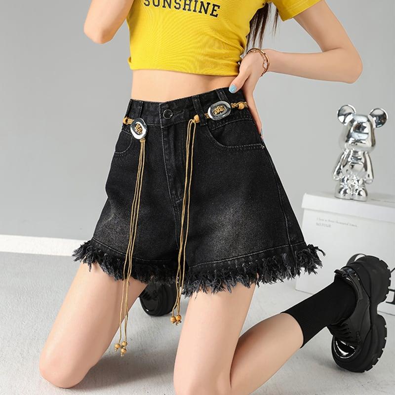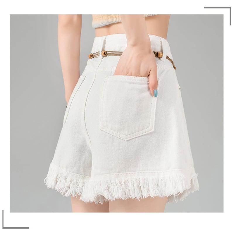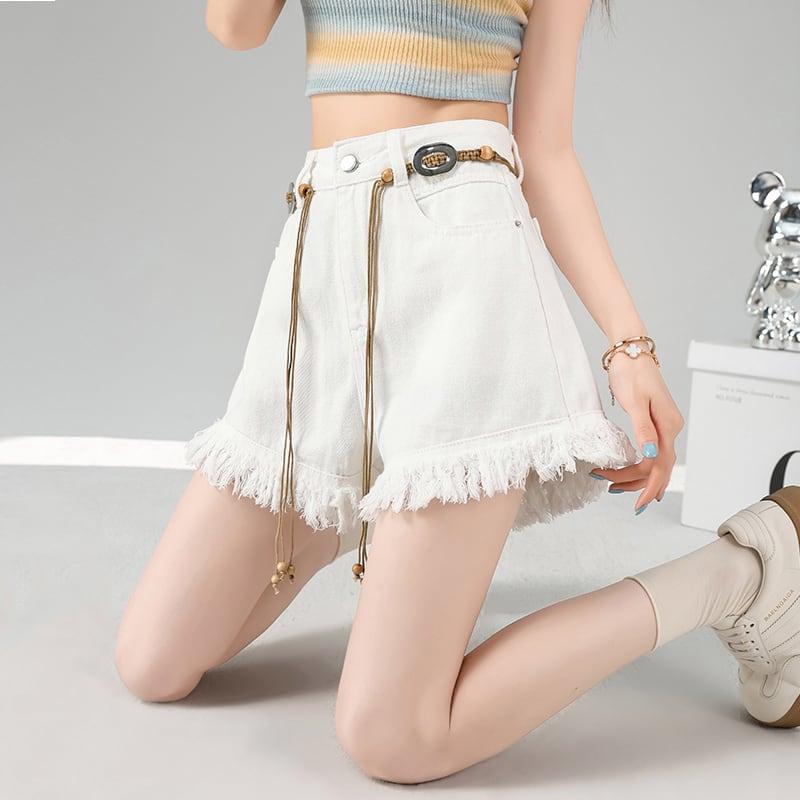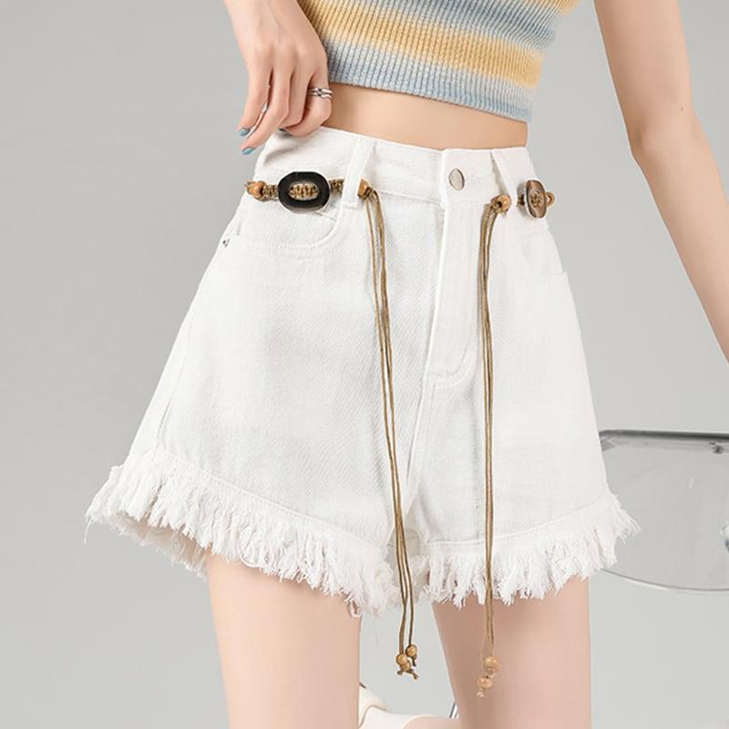ベルト付き ショートパンツ ズボン デニム 3color おしゃれ 青 白 黒