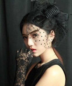 ベール付き トークハット ドット柄トーク帽 フォーマル ウェディングヘッドドレス 髪飾り カクテル帽ブラック 黒色
