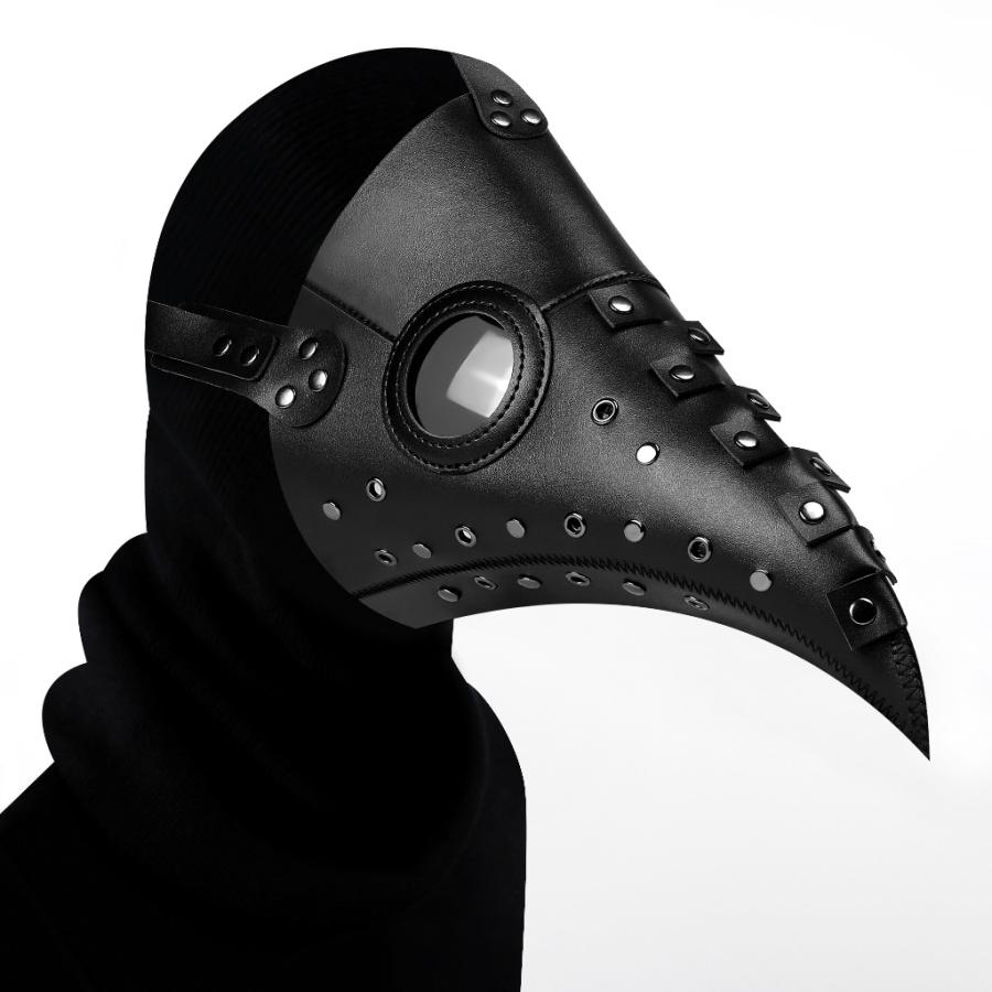 ペストマスクは中世ヨーロッパの防疫医師が着用していたマスクで、くちばし部分には薬草やハーブを詰めて使用されていました。