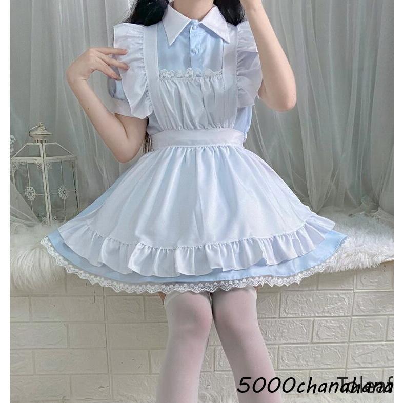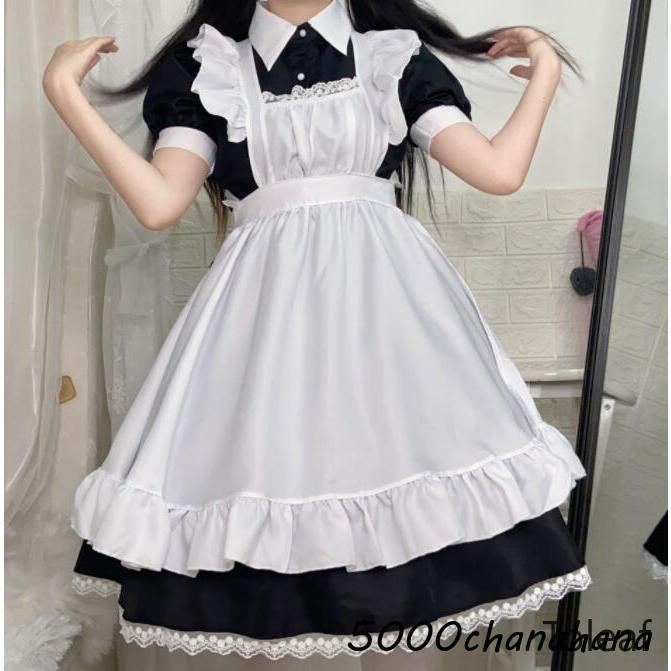 メイド服 レディース コスチューム コスプレ衣装 半袖 膝丈 ショート丈 ワンピース メイド 可愛い 喫茶店 エプロン ウェイトレス コス
