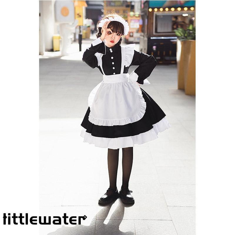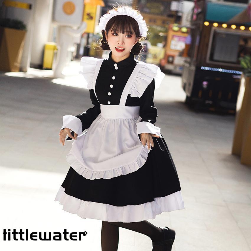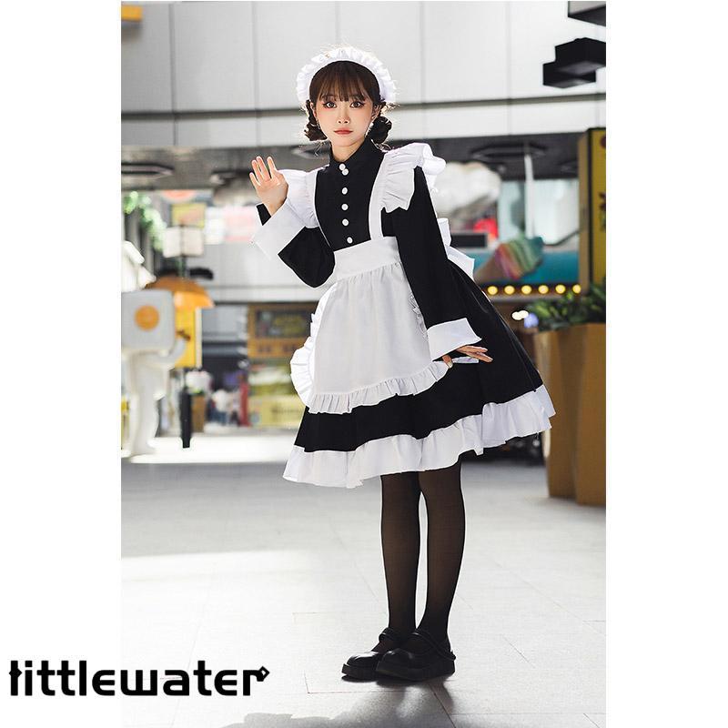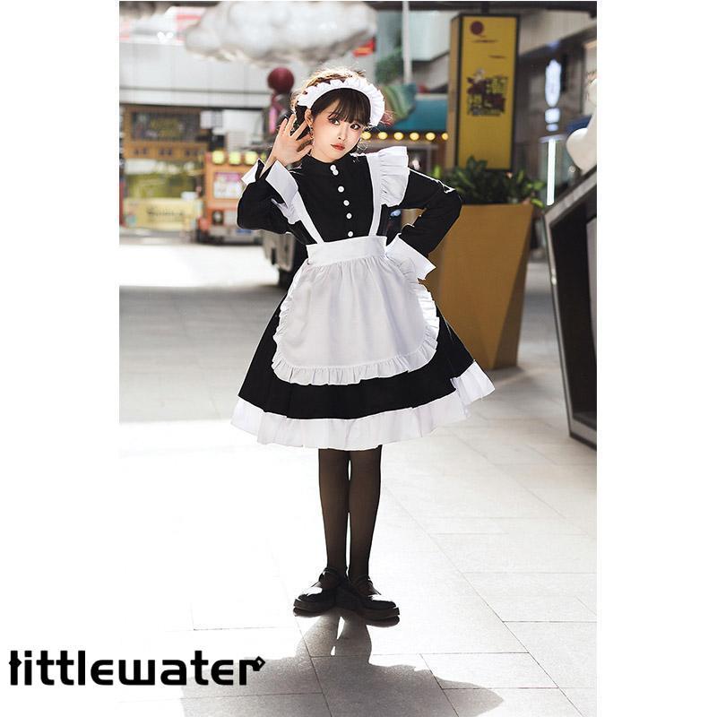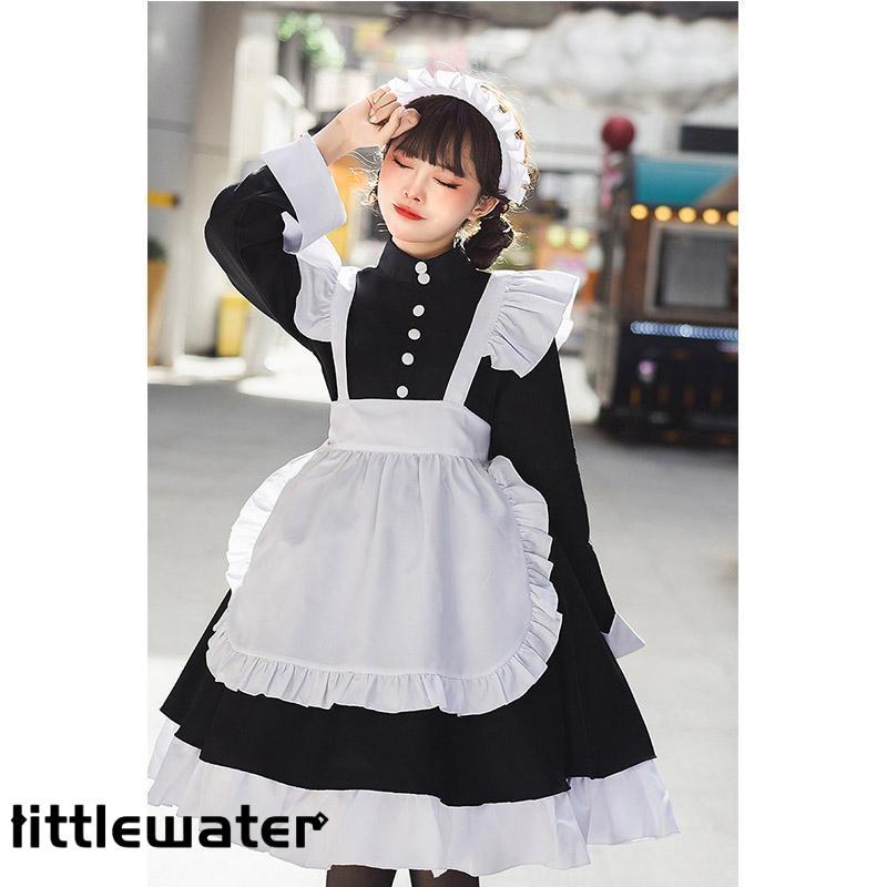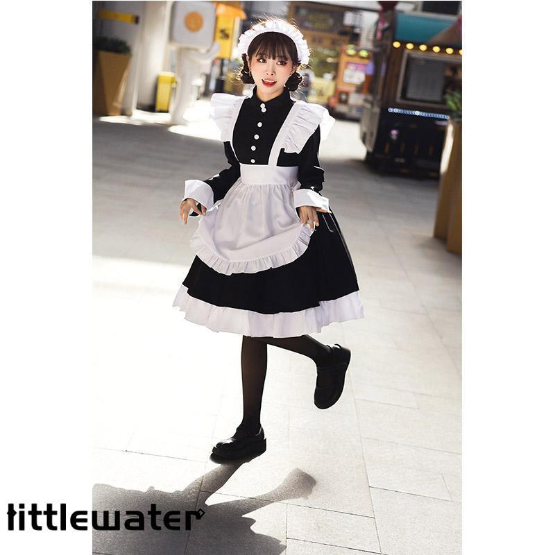 メイド服 ロング コスプレ 長袖 可愛い ロリータ ワンピース レディース 衣装 仮装 クラシカル 制服 エプロン 洋風