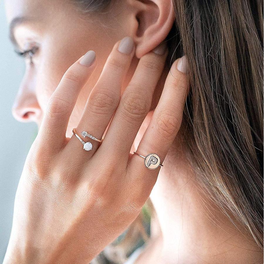 メッキ調整可能な作成オパールリング|スタッキングリング|女性のためのゴールドリング