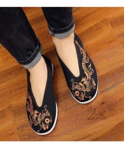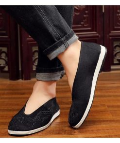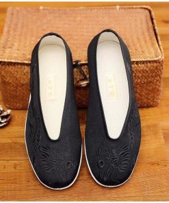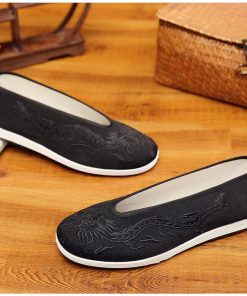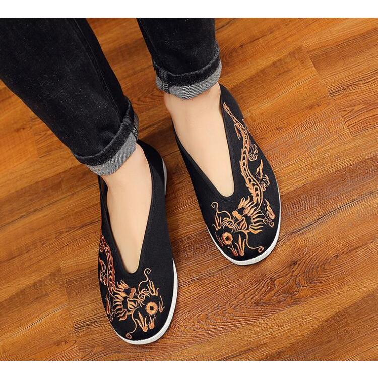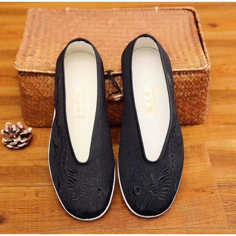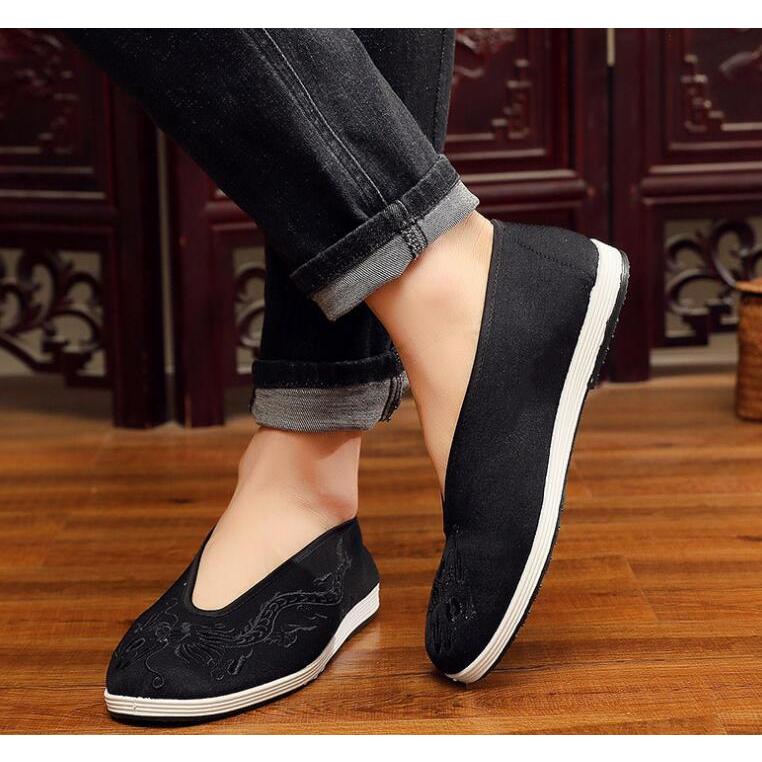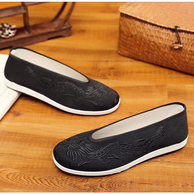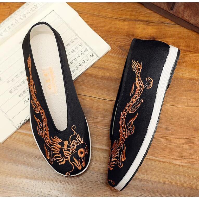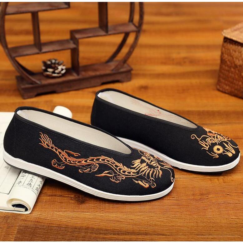 メンズ チャイナジュース チャイナ靴 パンプス 手作り 布靴 中華シューズ ローヒール エスニック 龍刺繍 金龍 黒龍 カジュアル 中華風 太極拳 シューズ 防臭 通
