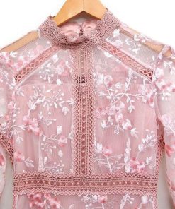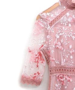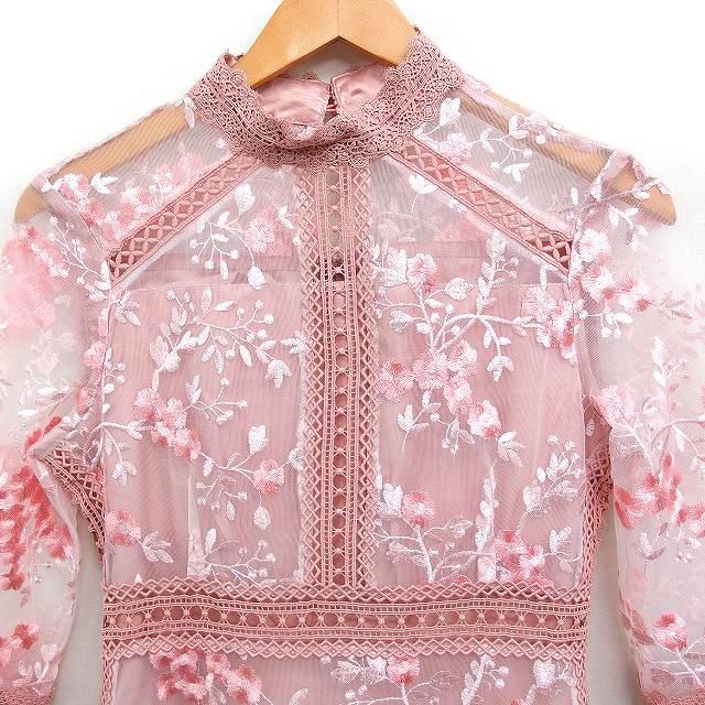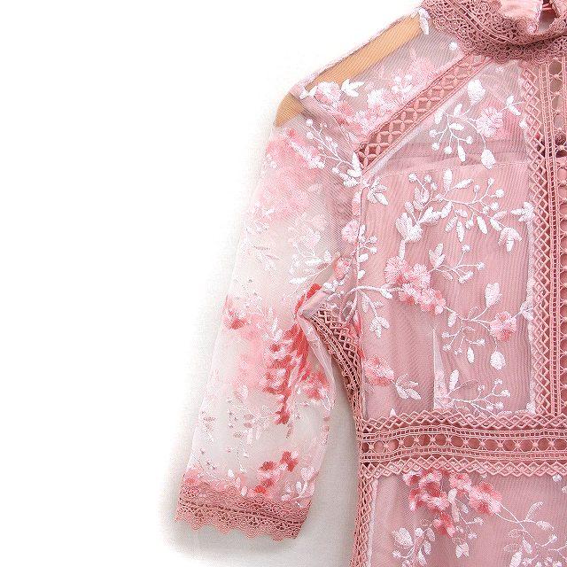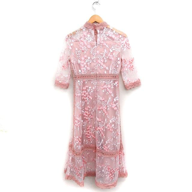 ルイルエブティック RUIRUE BOUTIQUE フラワー刺繍 レース ワンピース 7分袖 ロング パーティードレス M ピンク /FT27 レディース