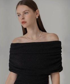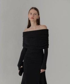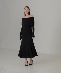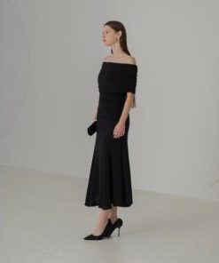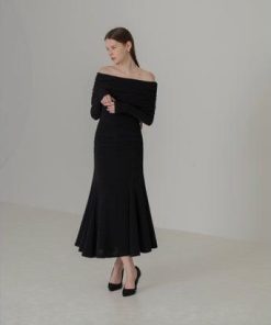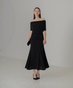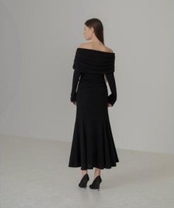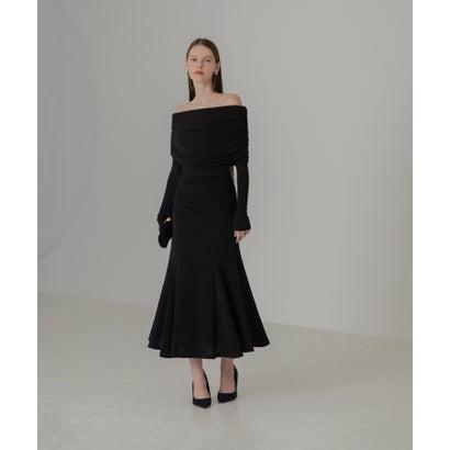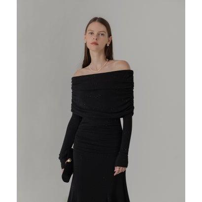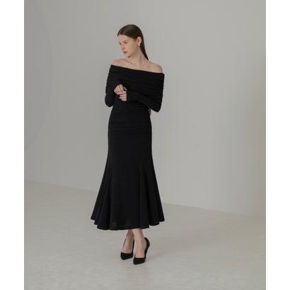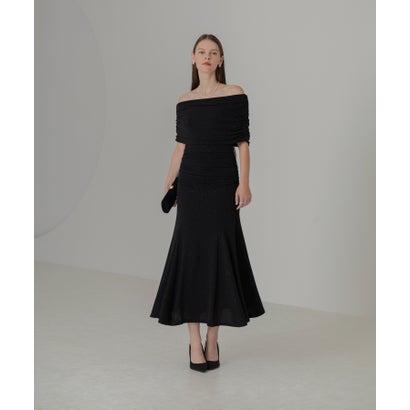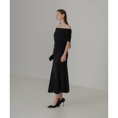 レジャ Leja ストーンオフショルダーアームカバー付き2WAYマーメイドワンピースドレス結婚式 パーティードレス 20代 30代 40代 (BLAC