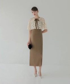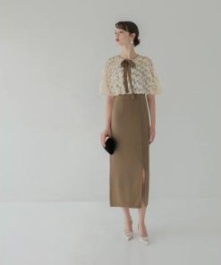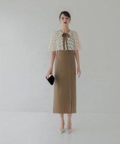 レジャ Leja スパンコールフリンジケープ Iラインドレス2点セット美脚効果結婚式 パーティードレス 成人式 二次会 同窓会 お呼ばれ オケージョン